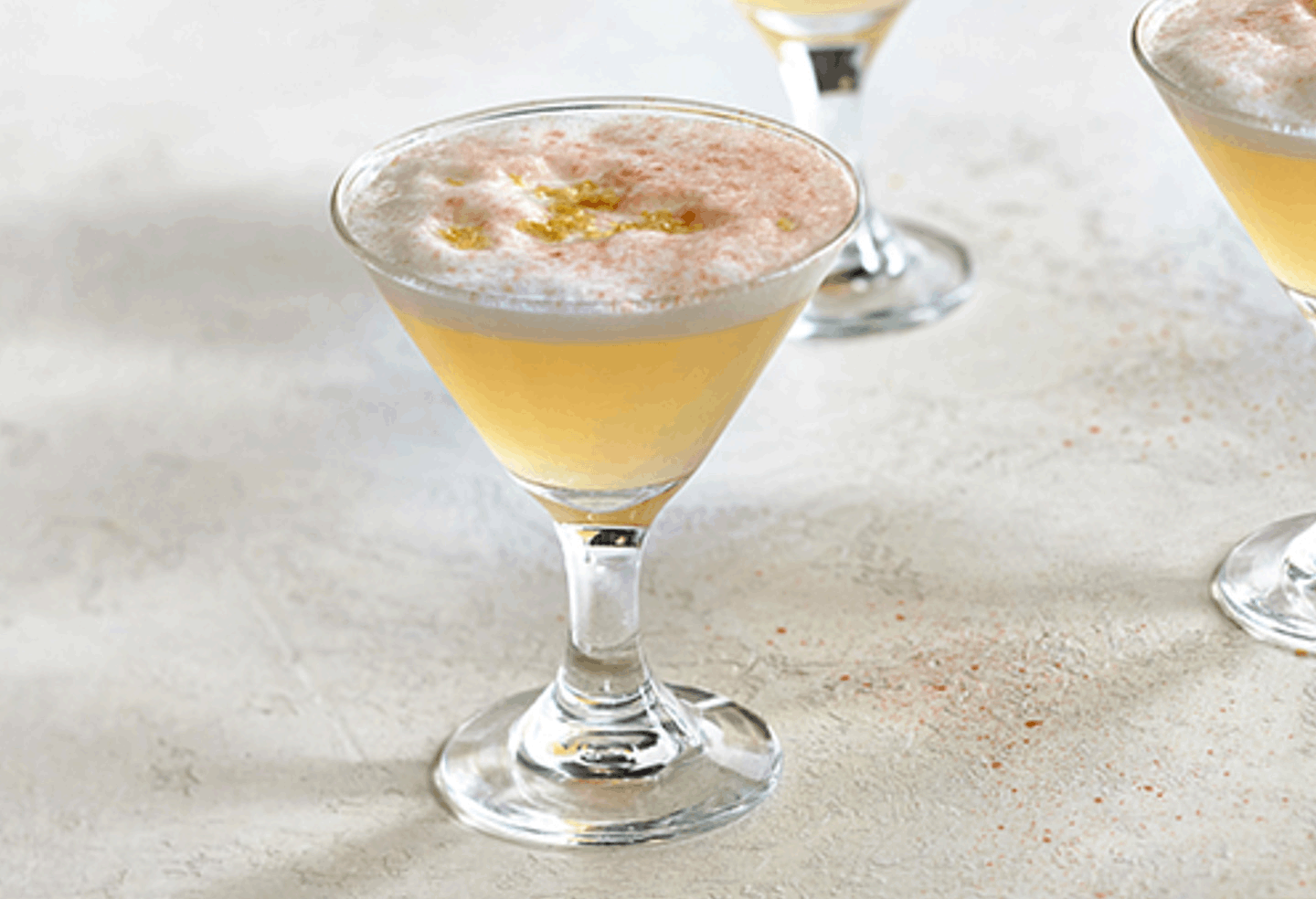 Combine and shake dry, add ice and shake again, strain, sprinkle grated lemon rind and spritz a dash of bitters on top.